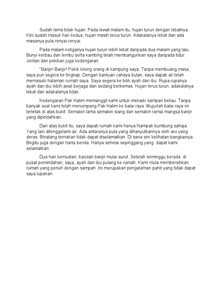 Curah Hujan Tinggi di Kabupaten Tanah Laut Masyarakat Diharapkan Lebih Waspada. Prosa adalah karangan bebas yang tidak terikat oleh banyaknya baris banyaknya suku kata dalam setiap baris serta tidak terikat oleh irama dan rimanya seperti dalam puisi.